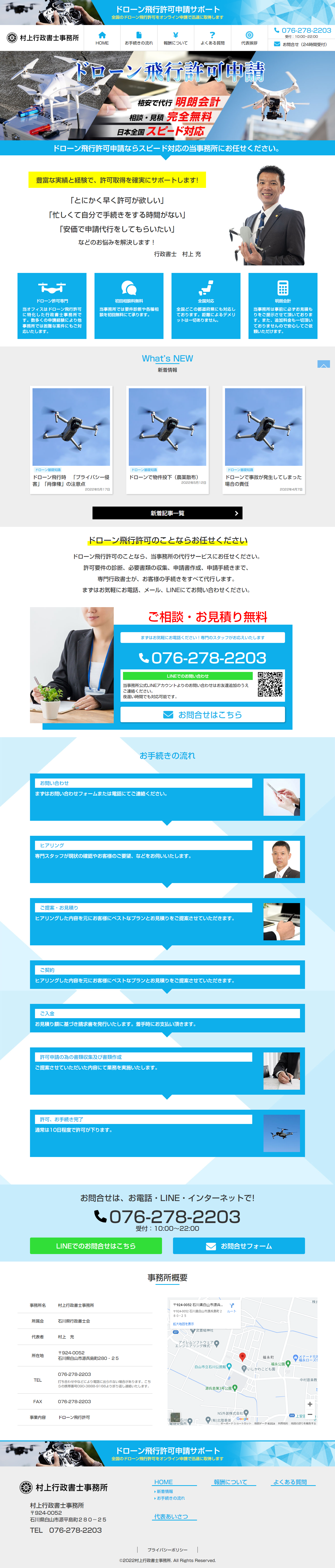 ドローン申請をメインとする行政書士事務所のWEBサイトを制作しました。
