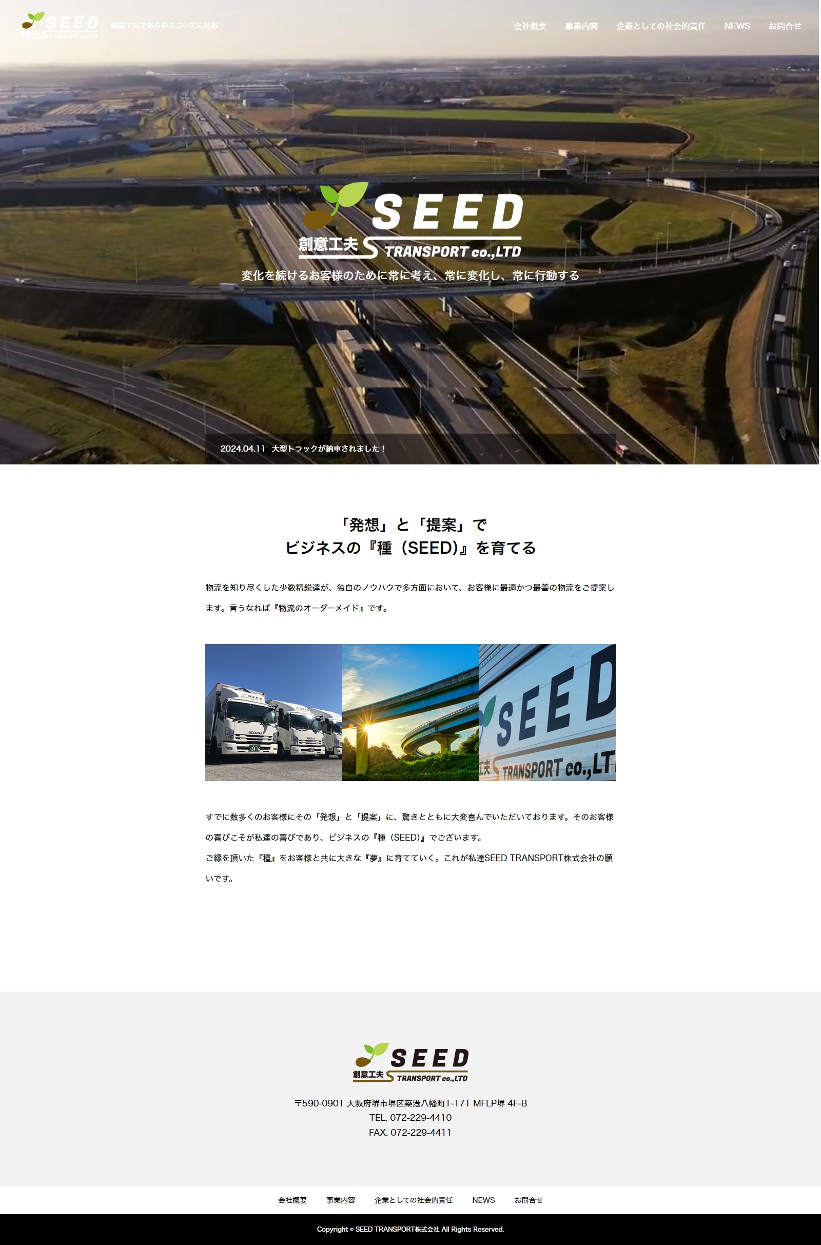運送会社のHP SEED TRANSPORT株式会社 公開日/制作日:2022年10月31日 URL:https://seedtransport.co.jp/ 運送会社様のWEBサイトを制作させていただきました。企業イメージを高めたいとのご要望でした。 ターゲット ・BtoB 目的 企業イメージを高めつつ、認知度アップしていきたい 設計 トップ 会社概要 安全への取組 NEWS お問い合わせ デザイン FVで動画を採用。SGDSに力を入れている事をメインにシンプルで伝わりやすいサイトに仕上げました 制作期間 2週間 使用ツール Photoshop / illustrator / DreamWeaver / WordPress