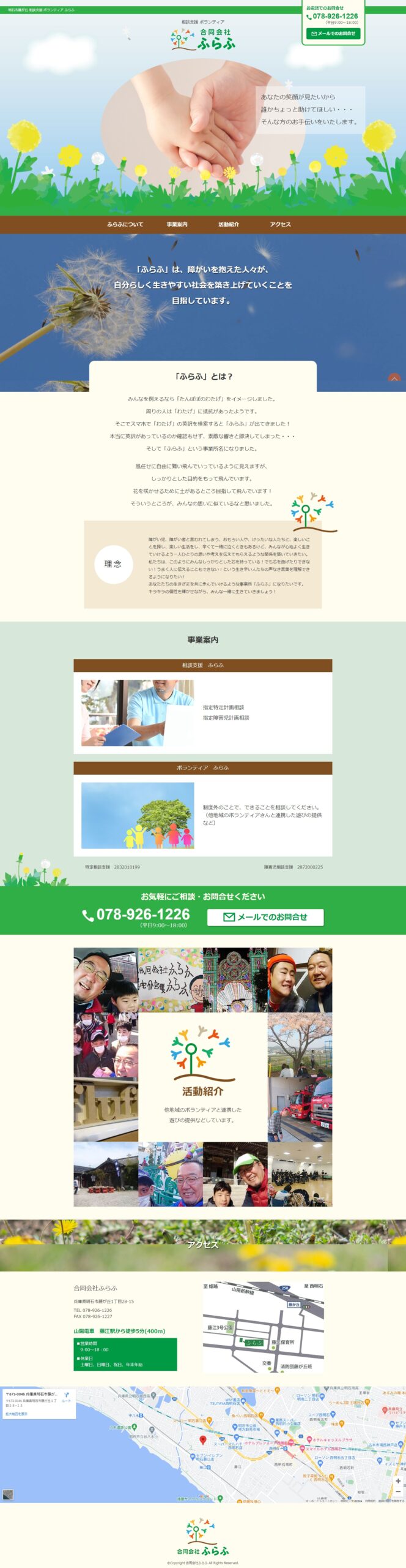 お問い合わせが目的という事で、FVでお問い合わせ詳細を入れ、わかりやすく誘導しております。 活動を紹介したいとの事で簡単なギャラリーを設置しました。